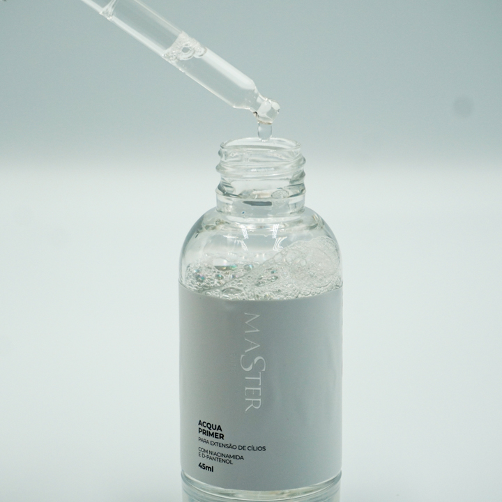 O Acqua Primer de Cílios Master foi desenvolvido para preparar os fios naturais de forma delicada e eficaz antes da aplicação das extensões. Sua fórmula à base de água remove oleosidade, sujeira e resíduos, sem agredir ou ressecar os cílios, garantindo uma adesão superior da cola e maior retenção do alongamento.