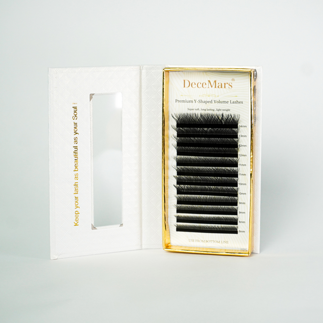 Descrição do produto: Os Cílios Decemars, são fabricados com um material de altíssima qualidade chamado fibra nobre de PBT e produzidos com alta tecnologia. Possuem um entrelaçamento de fios feitos em PBT muito leve que não prejudica os fios naturais.